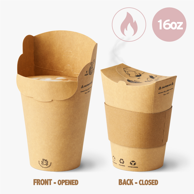 16oz Cup & Sleeve bundles from The Good Cup – Compostable, Biodegradable, lidless Cup and recyclable sleeves, both in Kraft.